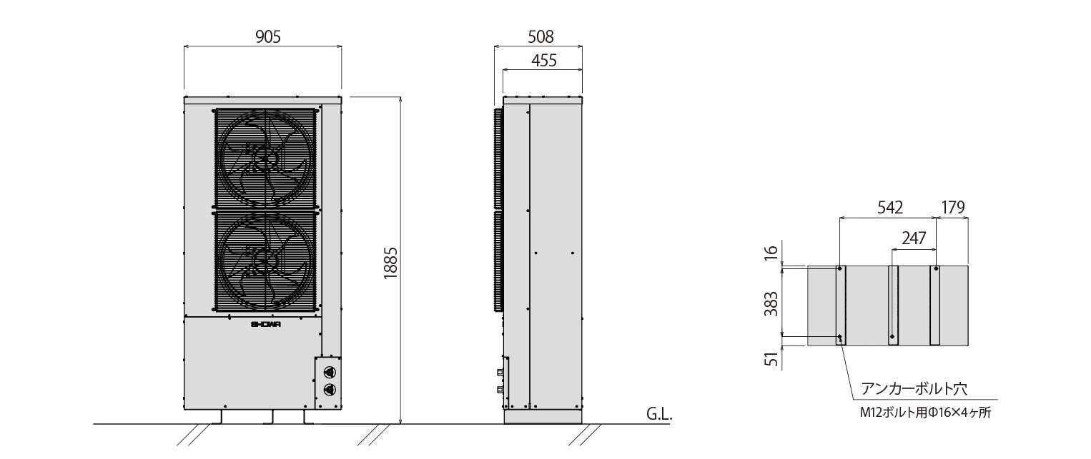 15kW業務用エコキュート(SSHP-15A)外形図