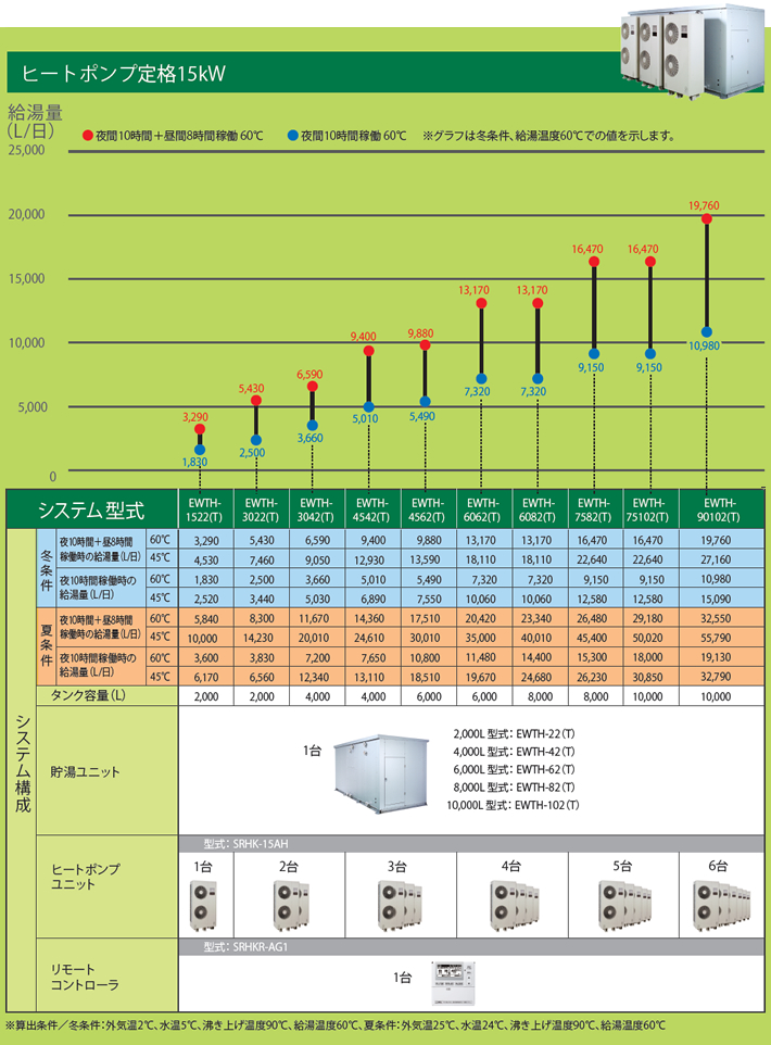 グラフは、お客さまの給湯負荷に最適なシステムと容量の目安を示しています。